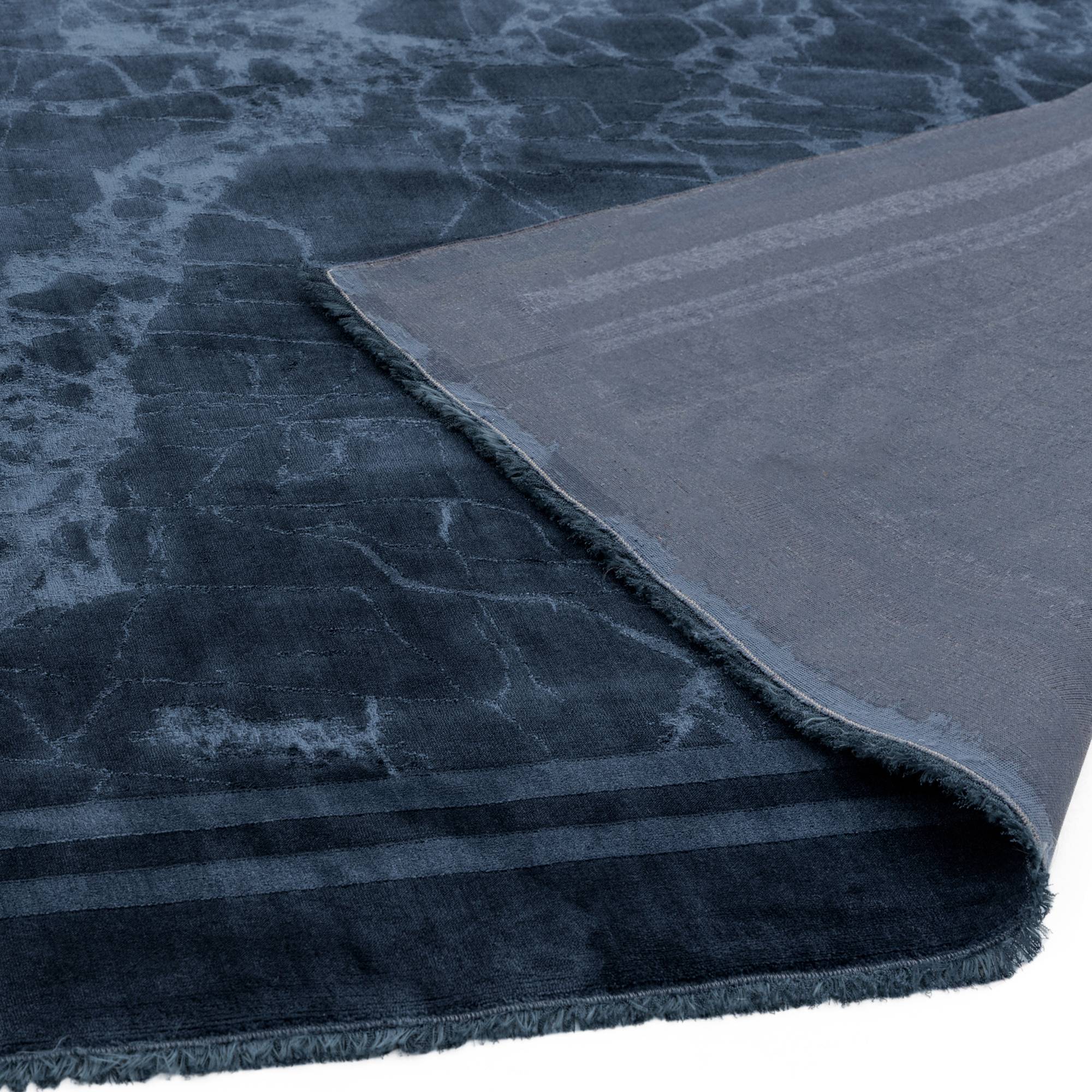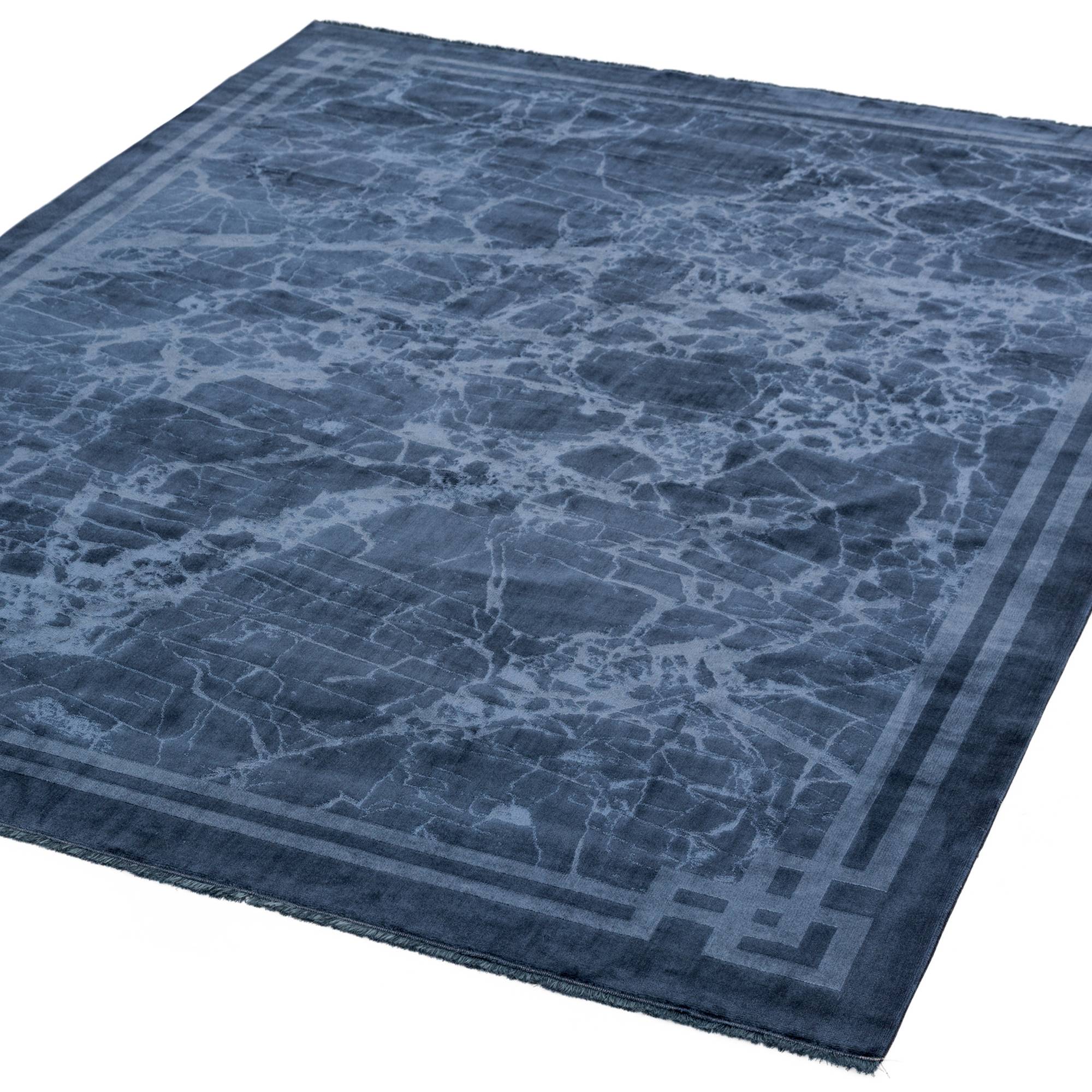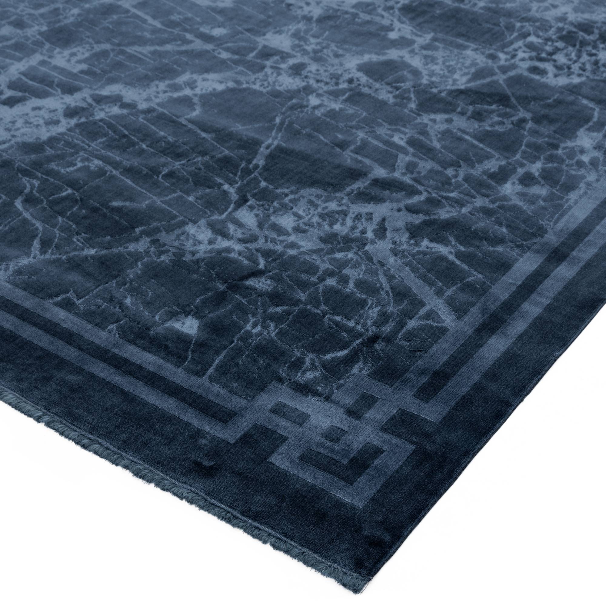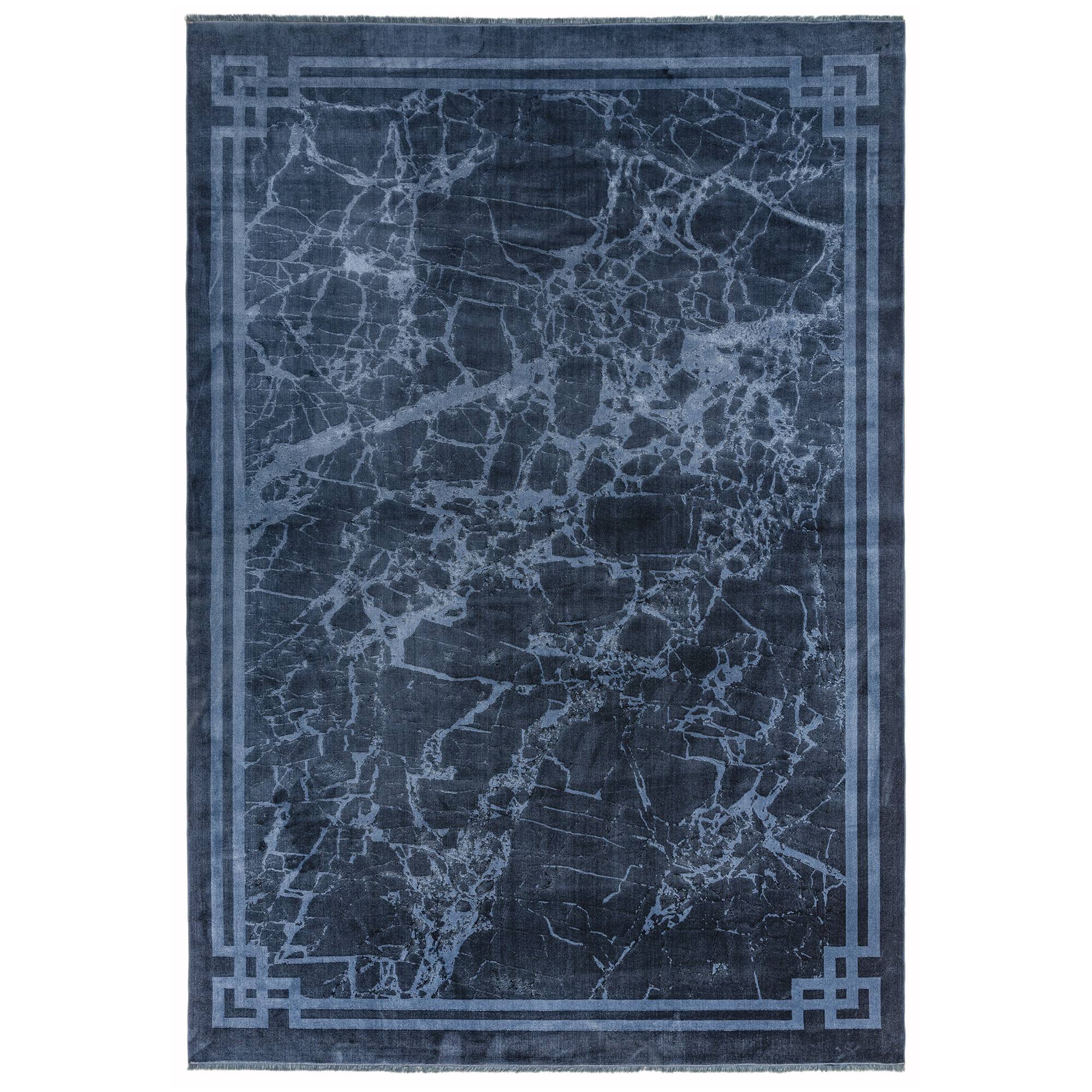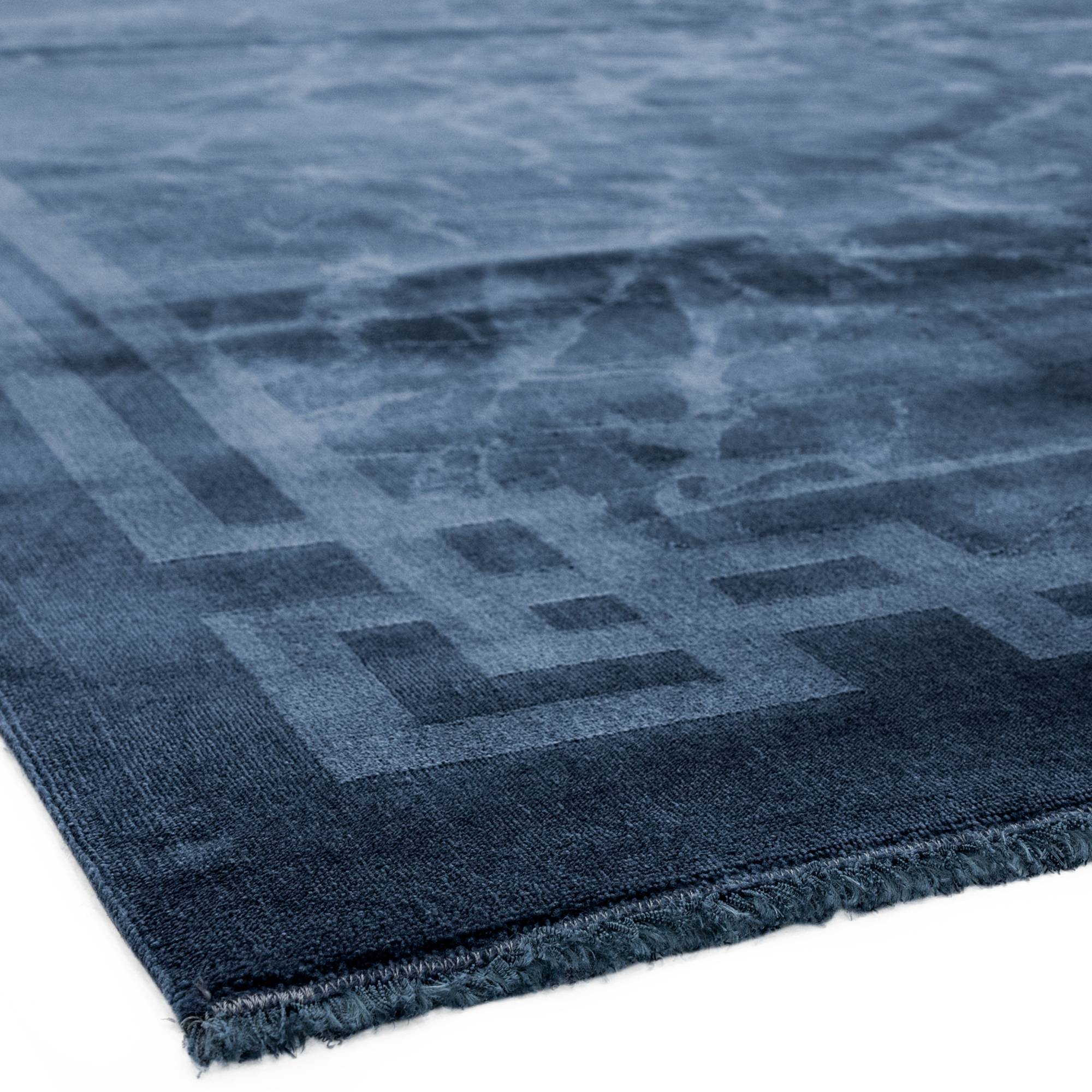 Zehraya Ink Blue Border Rug ZE02