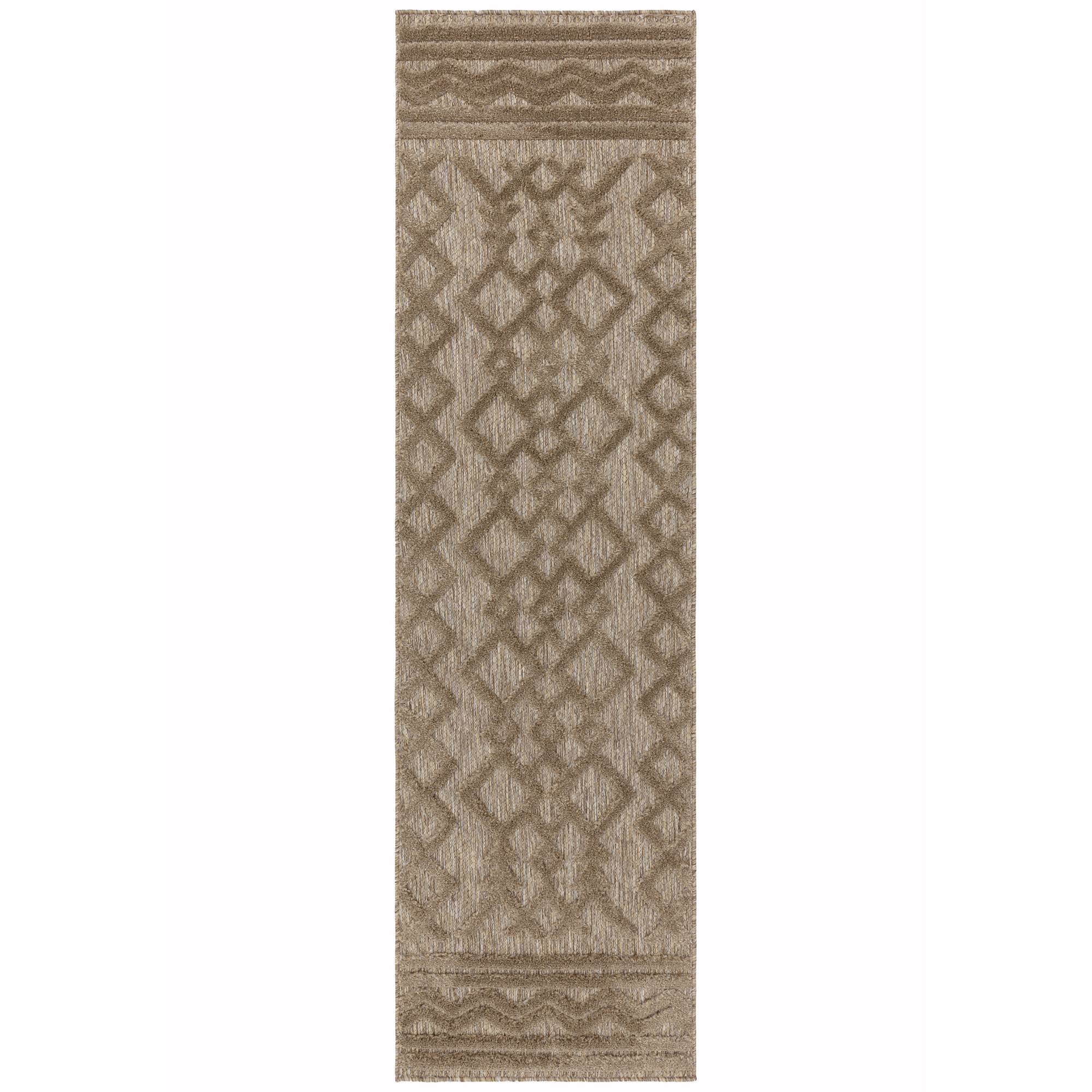 Featuring a practical machine woven construction, the highly durable, low maintenance Salta collection offers a number of modern geometric designs in a choice of popular neutral shades. A textured velvety soft high low pile offers a luxurious underfoot experience suited to both indoor and outdoor living. Offered in a selection of sizes, including a runner rug option, this versatile area rug would suit any living space.
