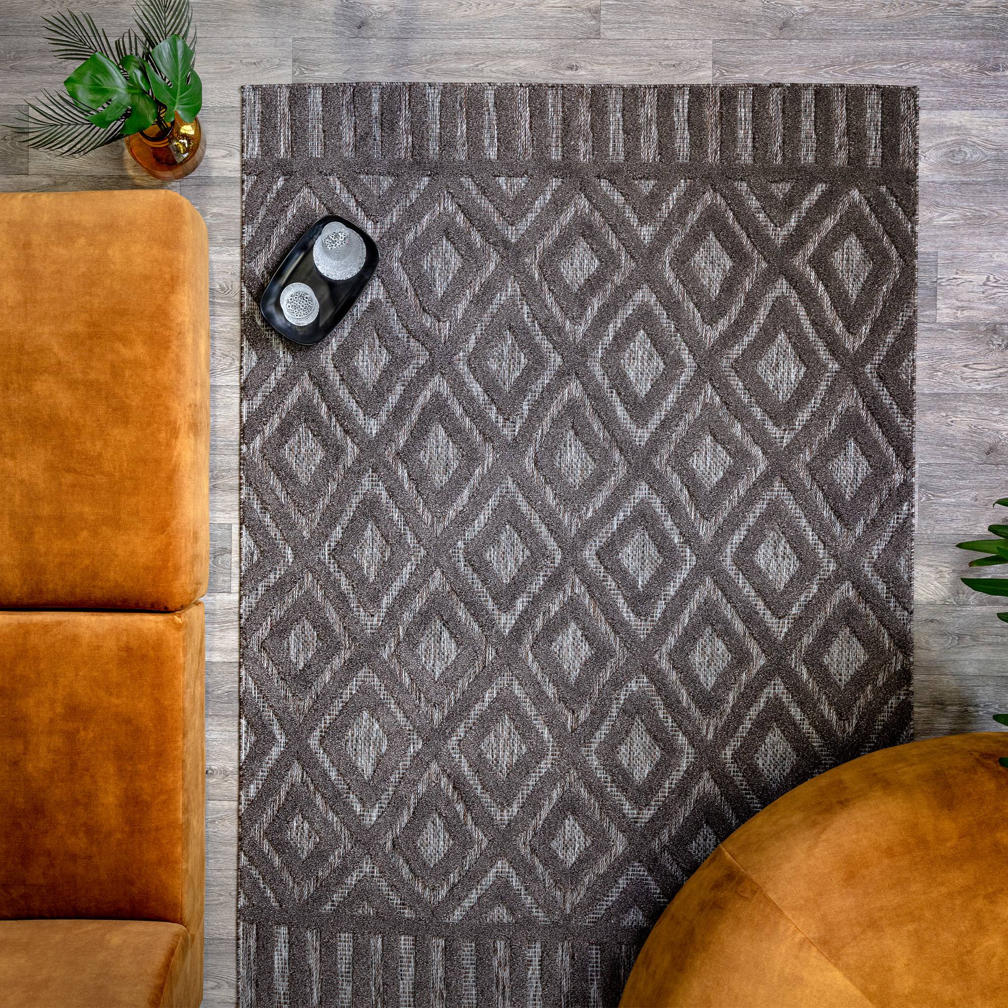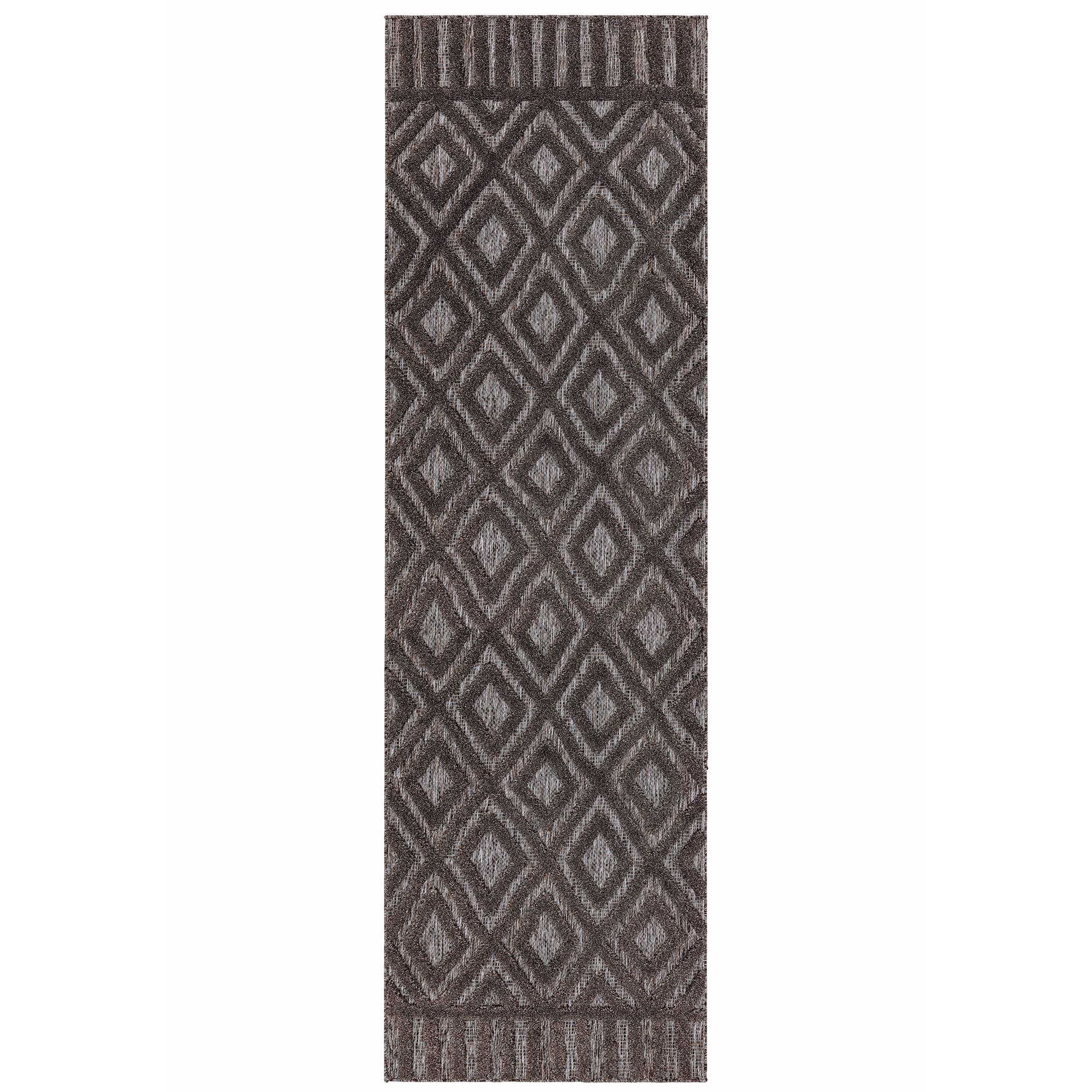 Featuring a practical machine woven construction, the highly durable, low maintenance Salta collection offers a number of modern geometric designs in a choice of popular neutral shades. A textured velvety soft high low pile offers a luxurious underfoot experience suited to both indoor and outdoor living. Offered in a selection of sizes, including a runner rug option, this versatile area rug would suit any living space.