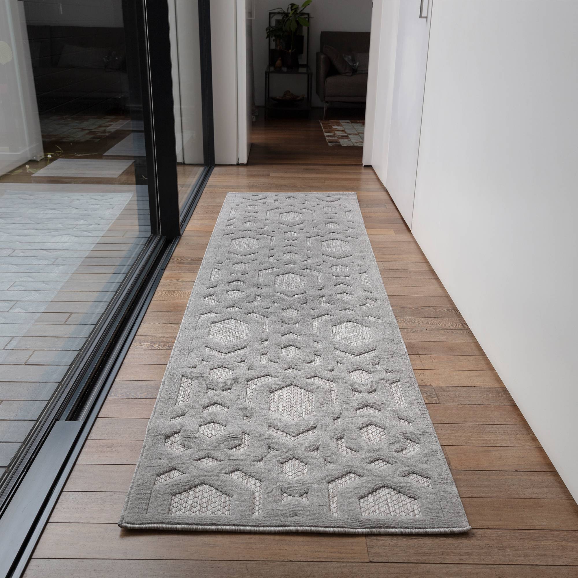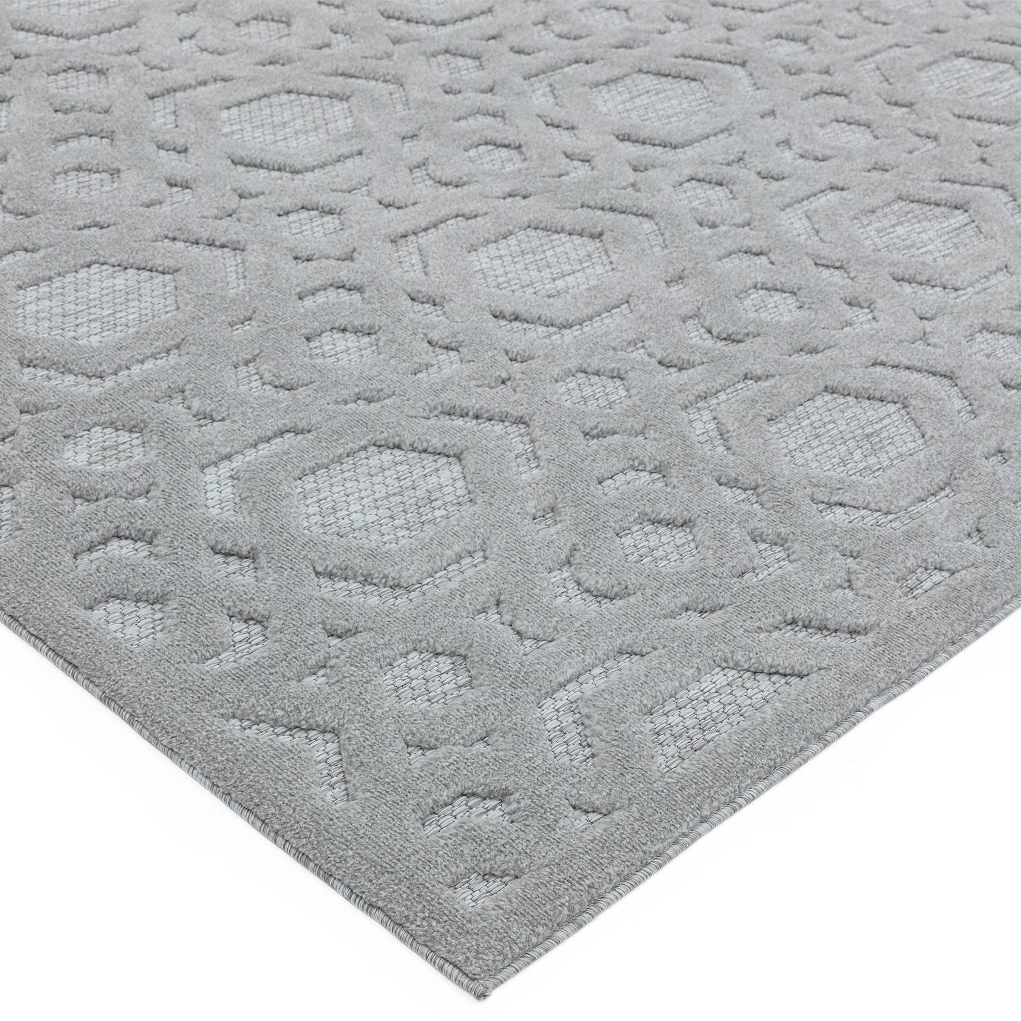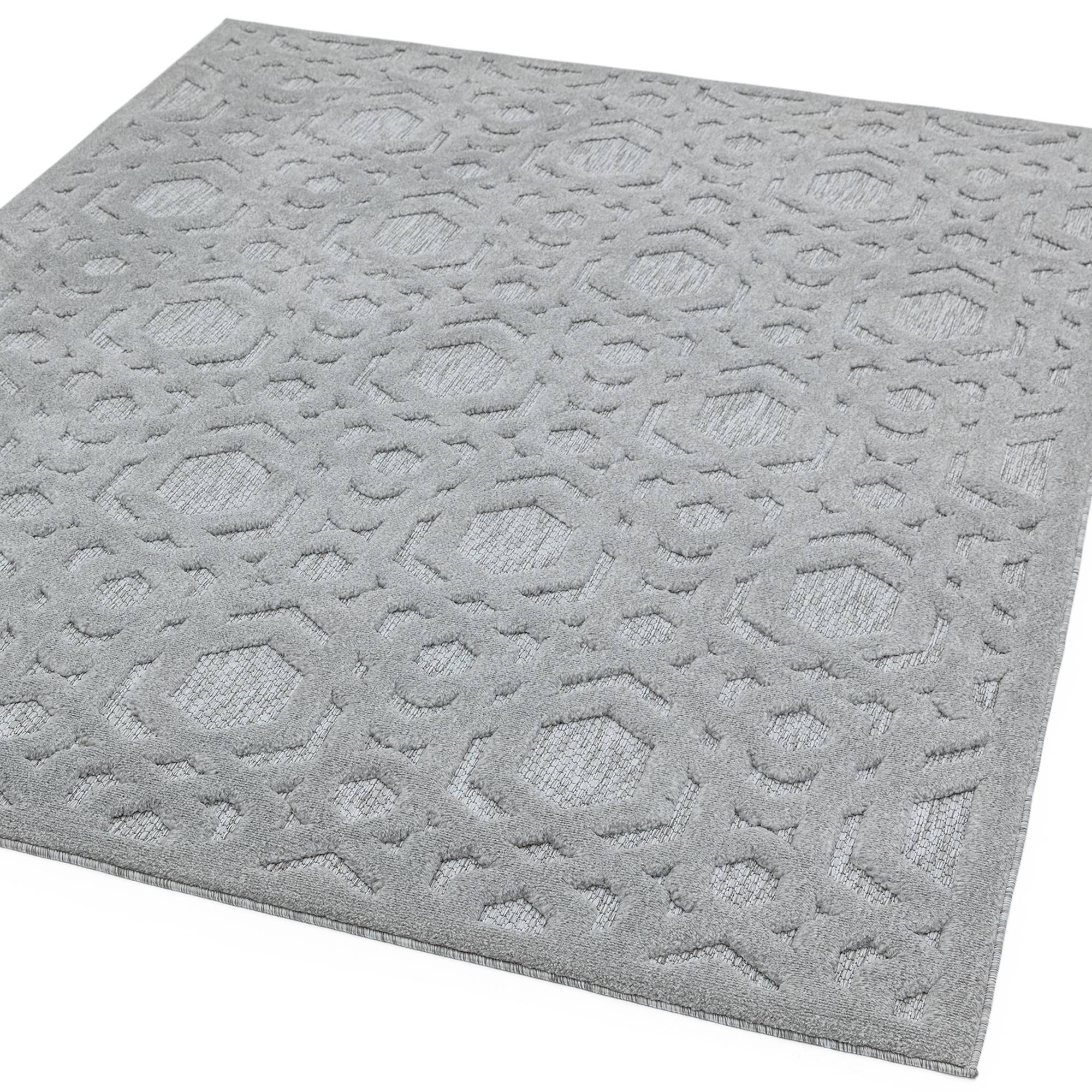 Featuring a practical machine woven construction, the highly durable, low maintenance Salta collection offers a number of modern geometric designs in a choice of popular neutral shades. A textured velvety soft high low pile offers a luxurious underfoot experience suited to both indoor and outdoor living. Offered in a selection of sizes, including a runner rug option, this versatile area rug would suit any living space.