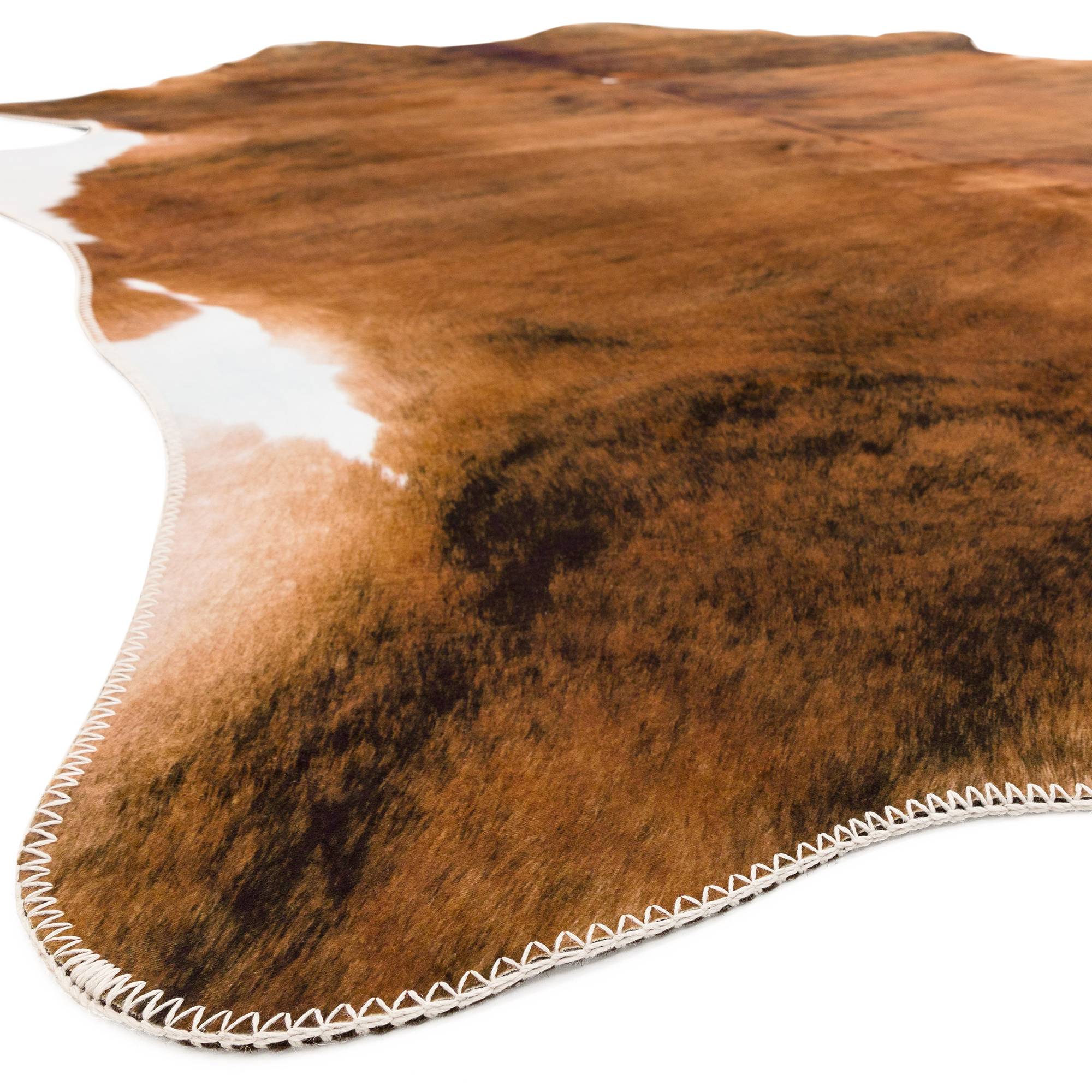 Photographic, digitally printed cowhides on a polyester anti-slip base